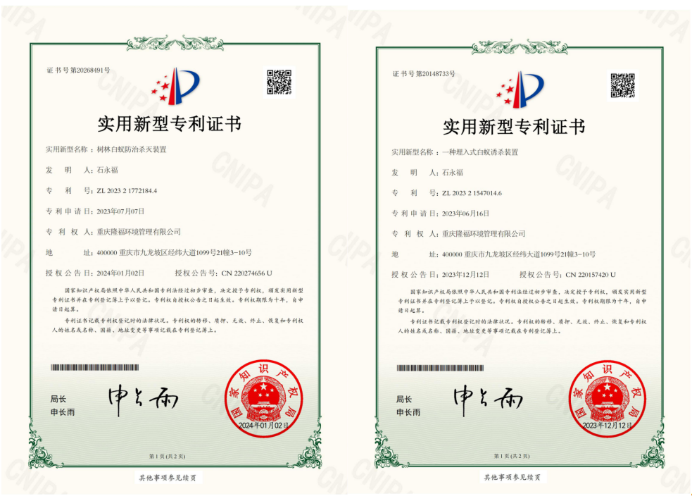 白蟻監(jiān)測(cè)控制裝置防治白蟻的原理是將白蟻喜食且對(duì)白蟻具有極強(qiáng)引誘力的木塊固定在監(jiān)測(cè)控制裝置內(nèi),然后將監(jiān)測(cè)控制裝置按一定的要求安裝在需保護(hù)的房屋、樹(shù)木周圍或堤壩內(nèi)、外坡及坡頂土壤中,外出覓食的工蟻到達(dá)監(jiān)測(cè)控制裝置周圍一定距離處的土壤中后,由于受裝置內(nèi)木塊釋放在土壤中的引誘物質(zhì)的強(qiáng)烈吸引,迅速將蟻路修筑至監(jiān)測(cè)控制裝置,并紛紛進(jìn)入裝置內(nèi)取食。